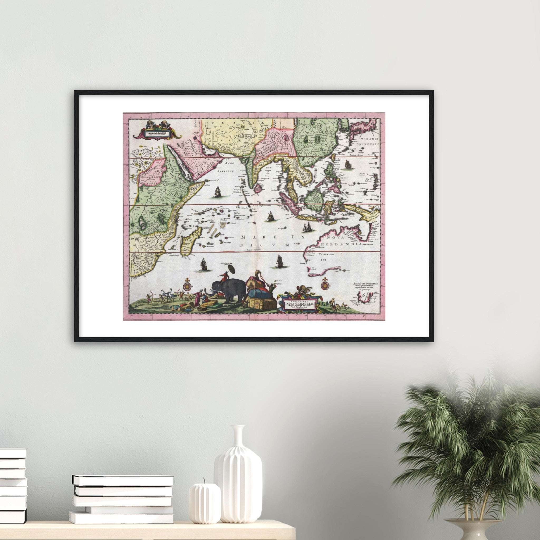 A fine Map of the Indian Ocean Basin, showing early Dutch charting of the Australia's West, North and South coasts, along with the Philippine Islands, Southeast Asia, India, Arabia and Africa.