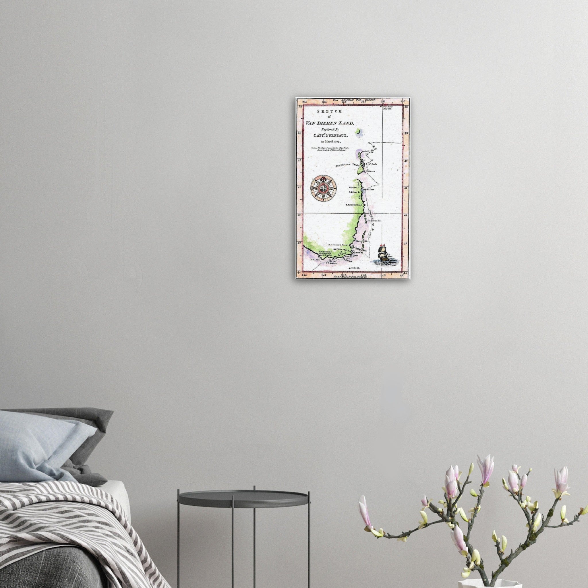 Reproduced from the original chart, then hand coloured in the style of the period and digitally printed on high quality 300gsm coated canvas - stretched on a 3 cm thick frame from FSC certified wood - ready to hang.
