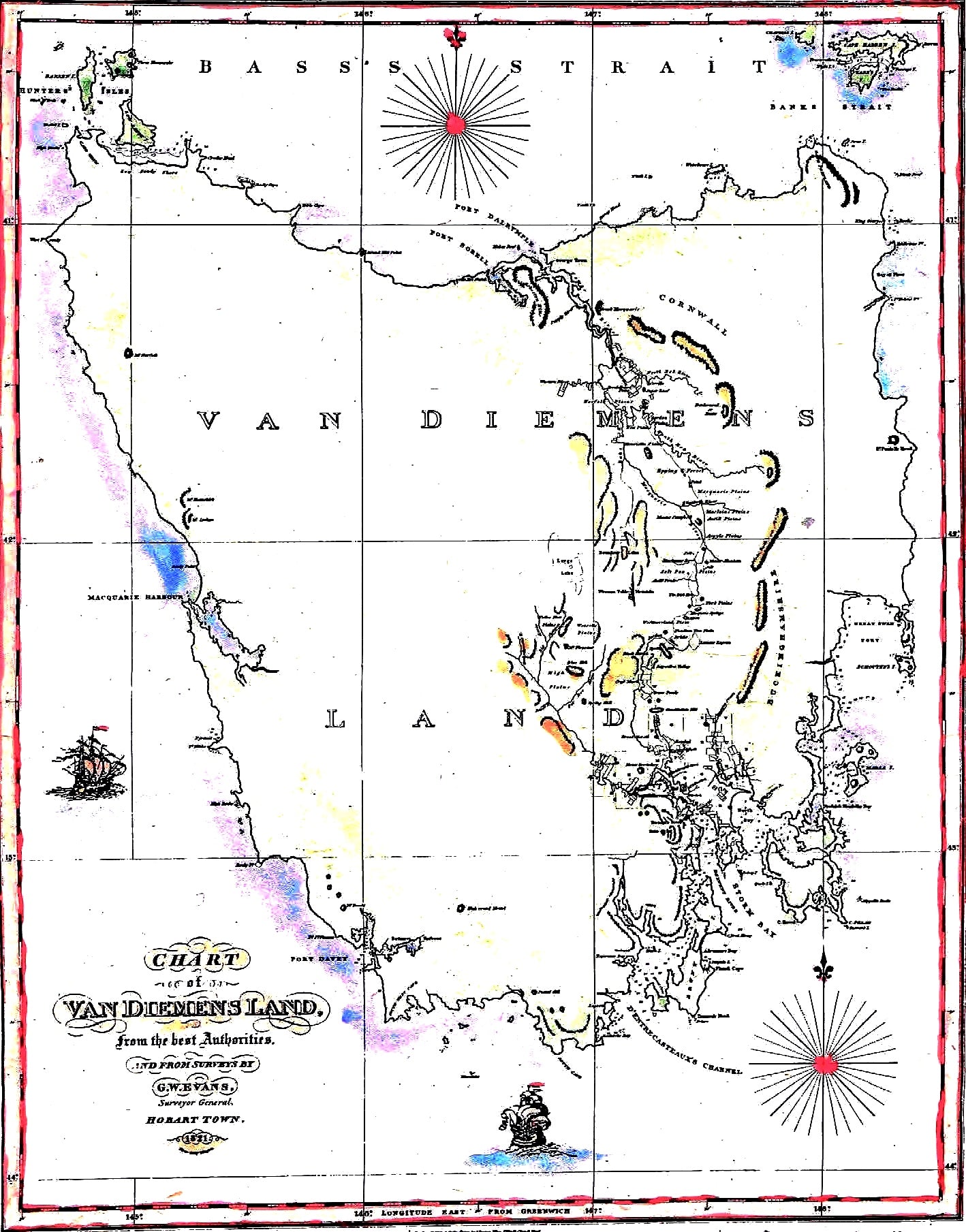 Complete map of Van Diemens Land drawn by the Surveyor General, G.W. Evans.