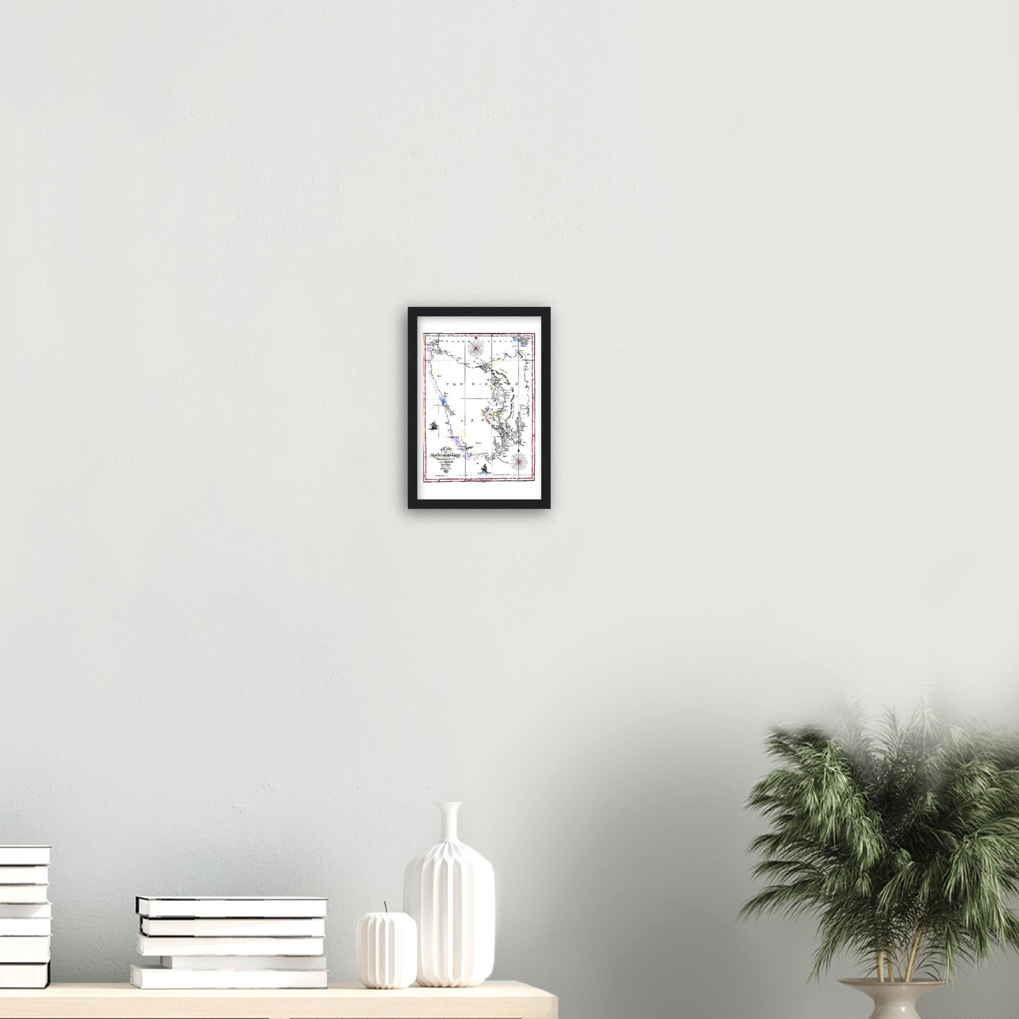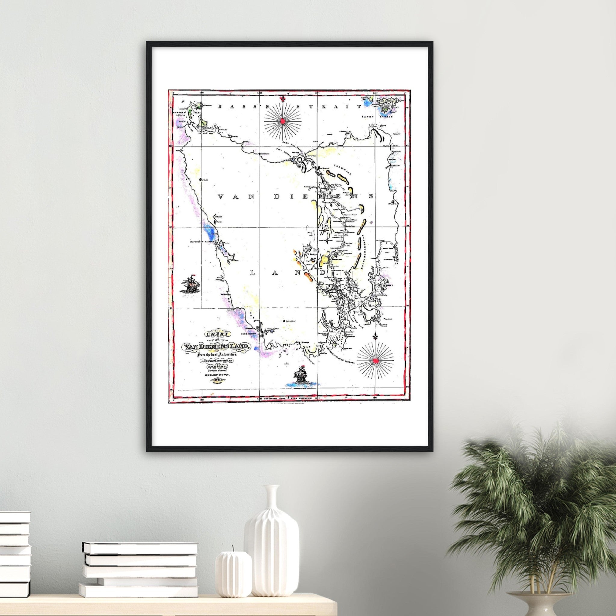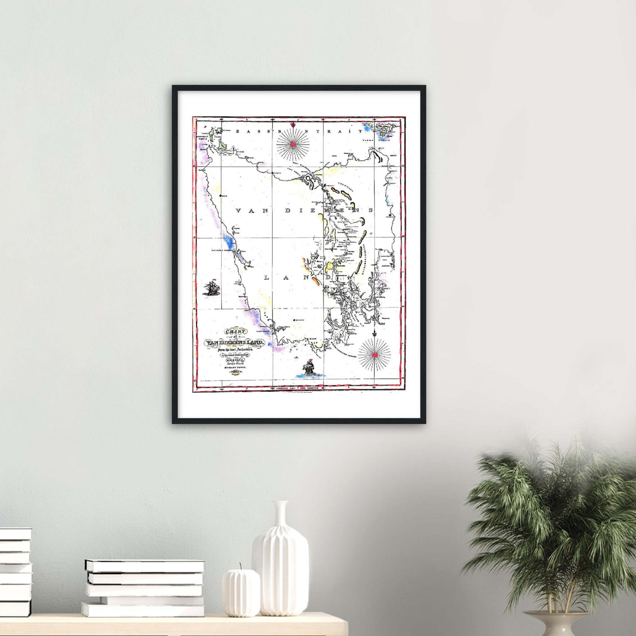 Reproduced from the original chart, then hand coloured in the style of the period and digitally printed.