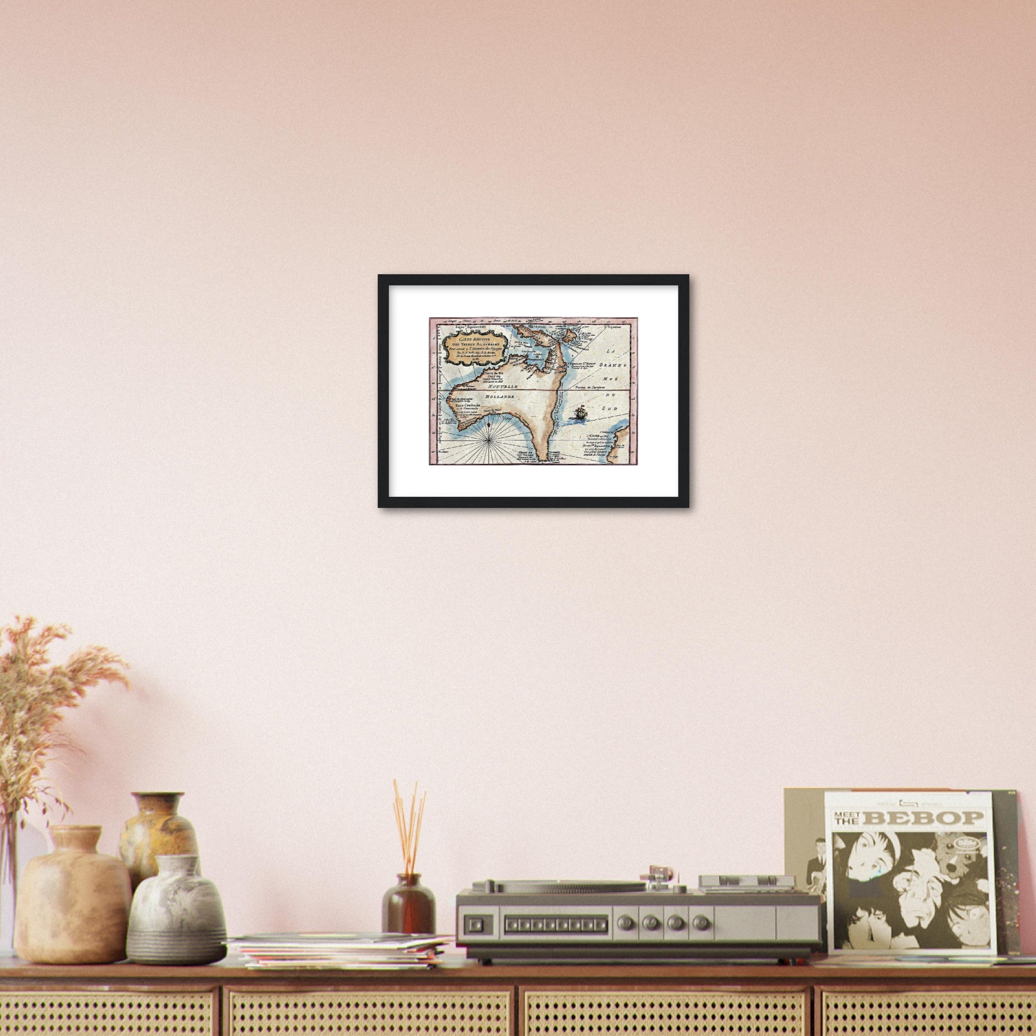 Reproduced from the original chart, then hand coloured in the style of the period and digitally printed on premium quality 200 gsm matte (uncoated) paper, framed with shatterproof plexiglass - ready to hang.
