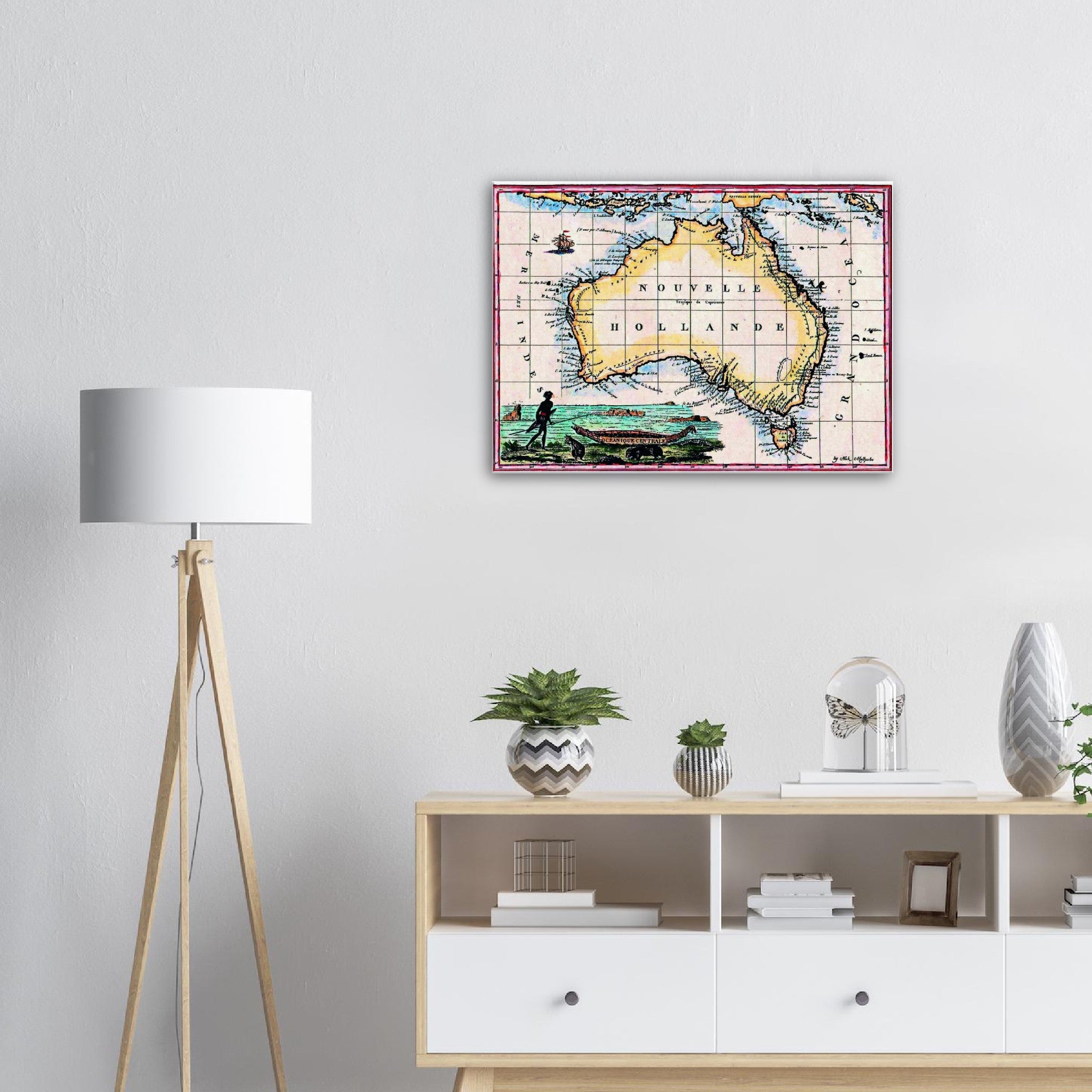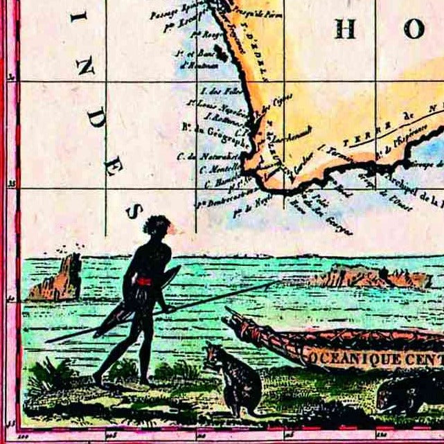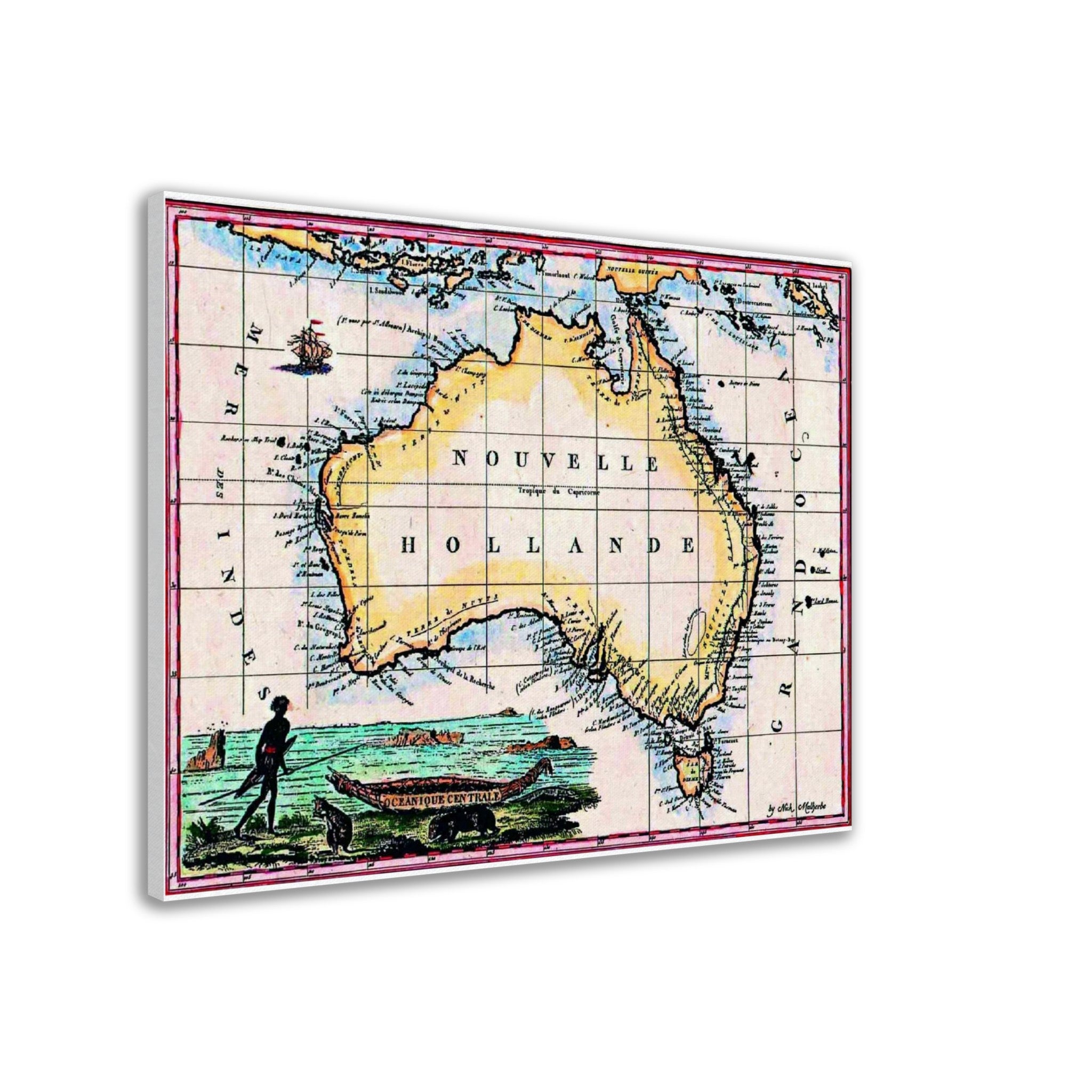 Nouvelle Hollande, Lapie, Paris 1811 - hand-coloured stretched canvas - ready to hang
